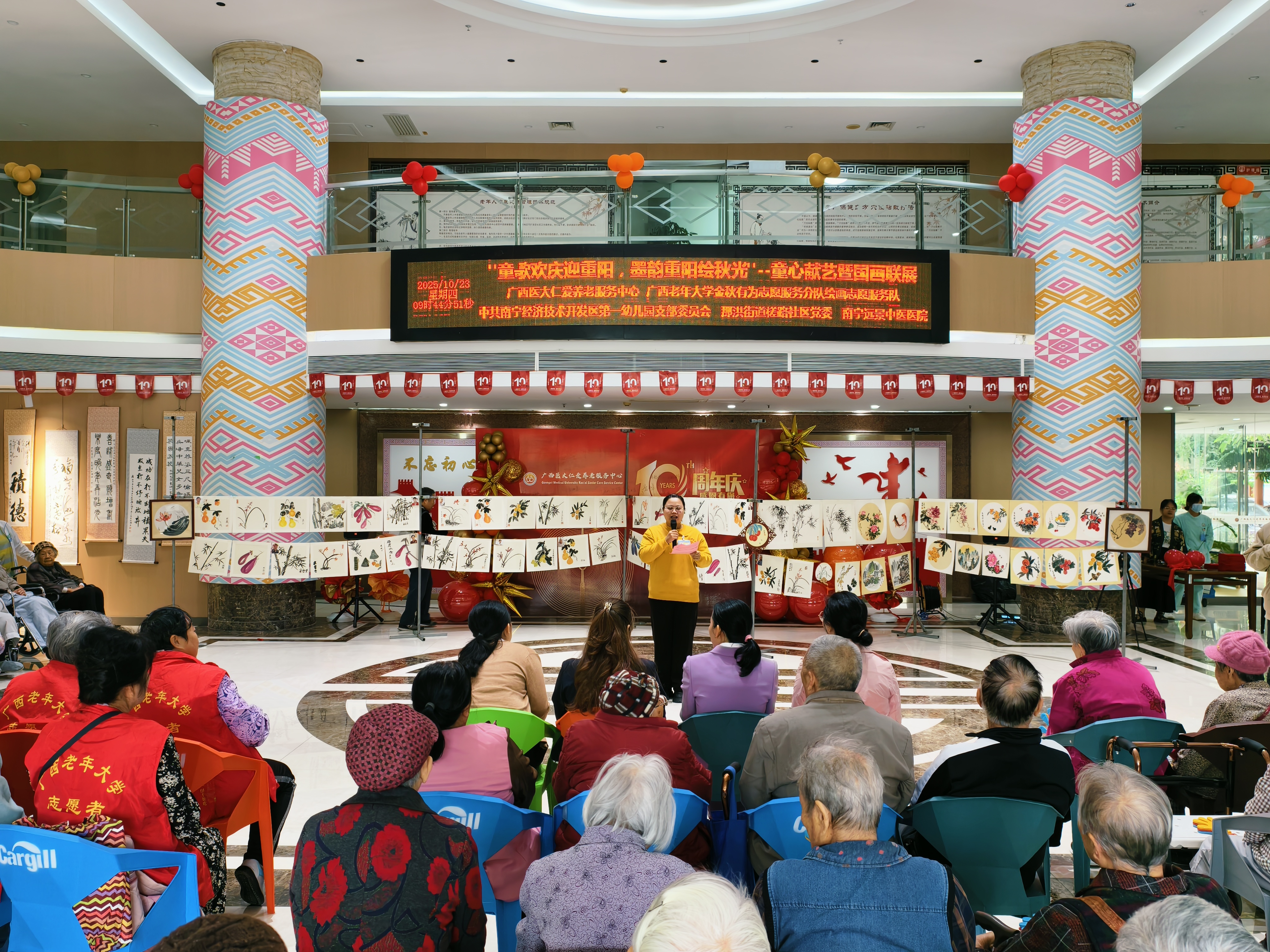 10月23日,广西医大仁爱养老服务中心在一号楼1楼大厅举办“墨韵重阳绘秋光”国画主题展。本次活动以画为媒,不仅为院内长者送上节日祝福,更展现了他们老有所学、乐在其中的精神风貌。 -